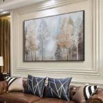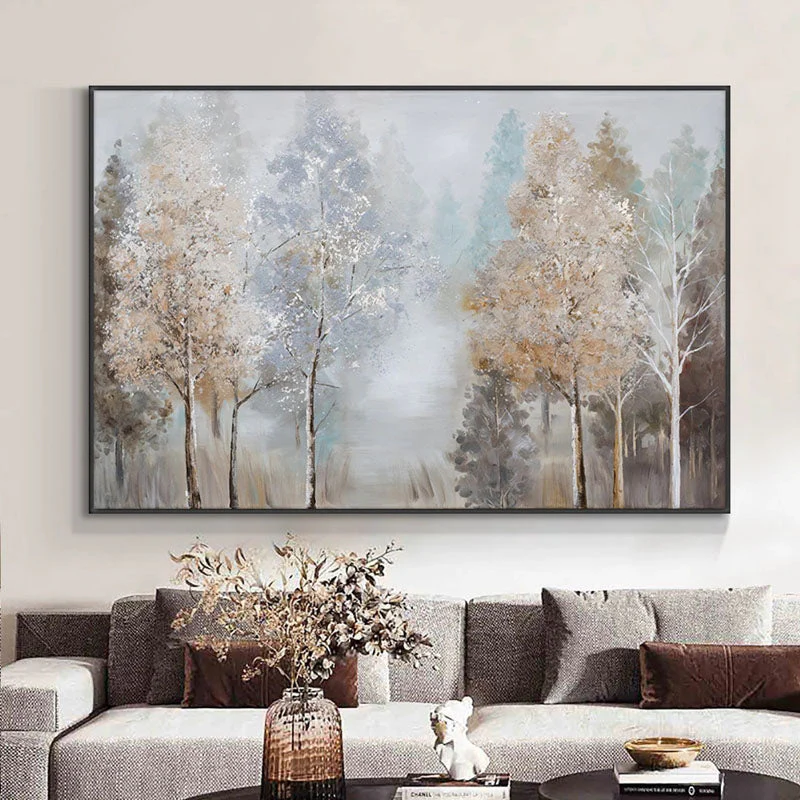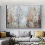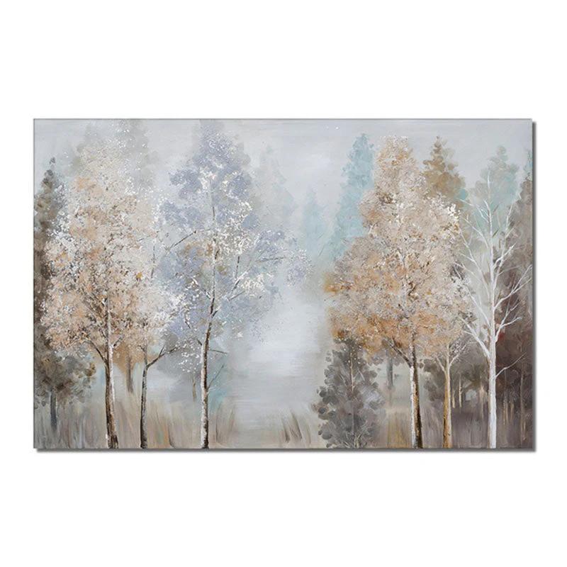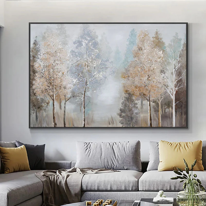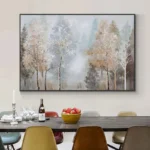 Frosted branches and misty skies—this painting captures the stillness of a winter woodland. It’s a peaceful moment frozen in time, perfect for adding soft elegance to any room. Nature’s beauty is never out of season.