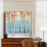 Forest Lake is a splendid work of art that will add a touch of class to any room. This painting features autumn trees, and will give you that cozy season vibe all year round! This painting would be a great addition to any home!