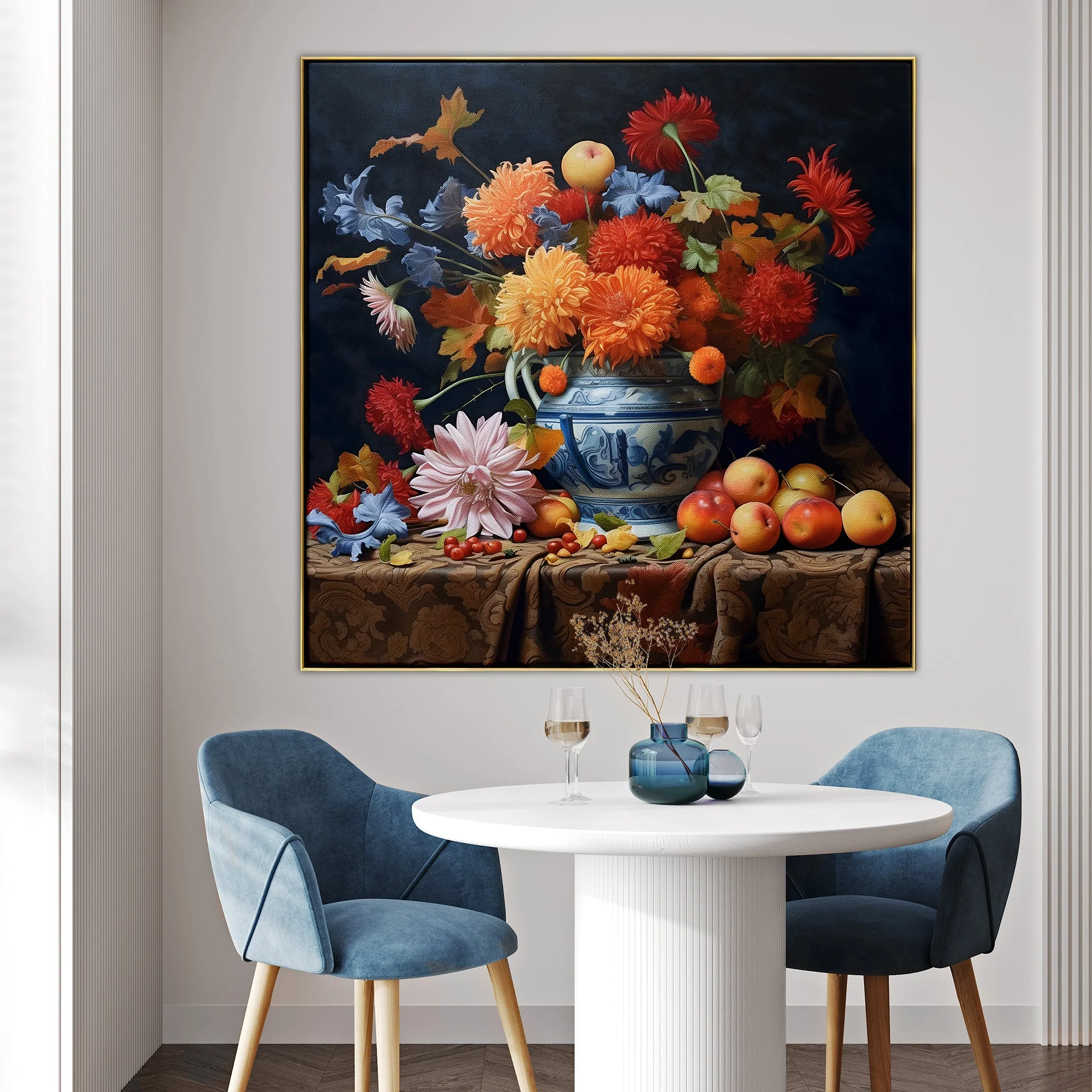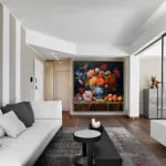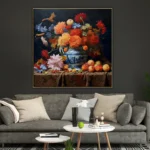 French Bouquet’ is a visual symphony of nature’s finest. This composition of flowers and fruits creates a harmonious melody that celebrates the timeless beauty of life’s simple pleasures in an intricate realism style.