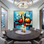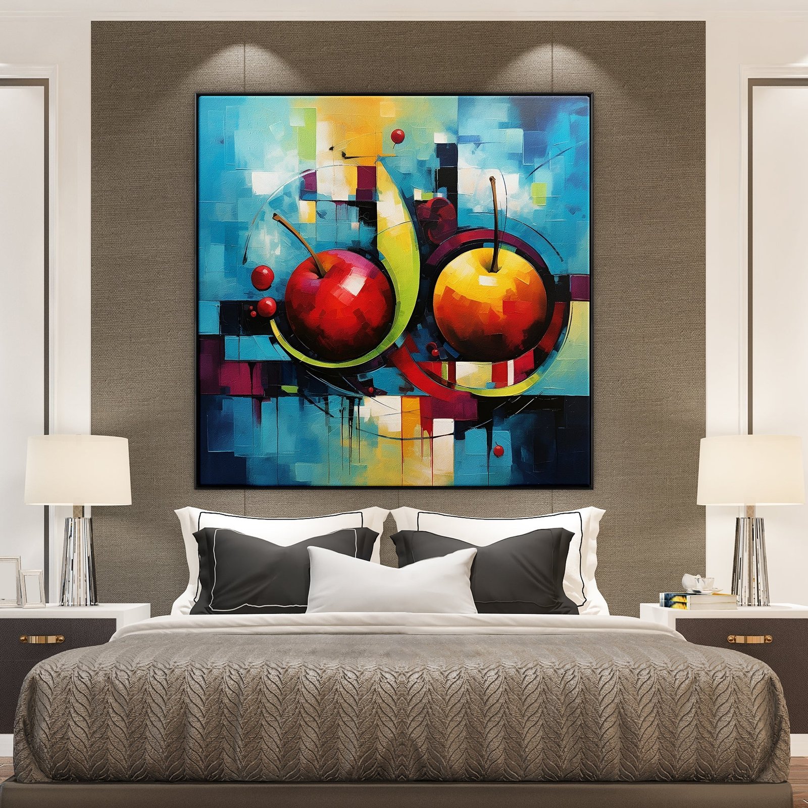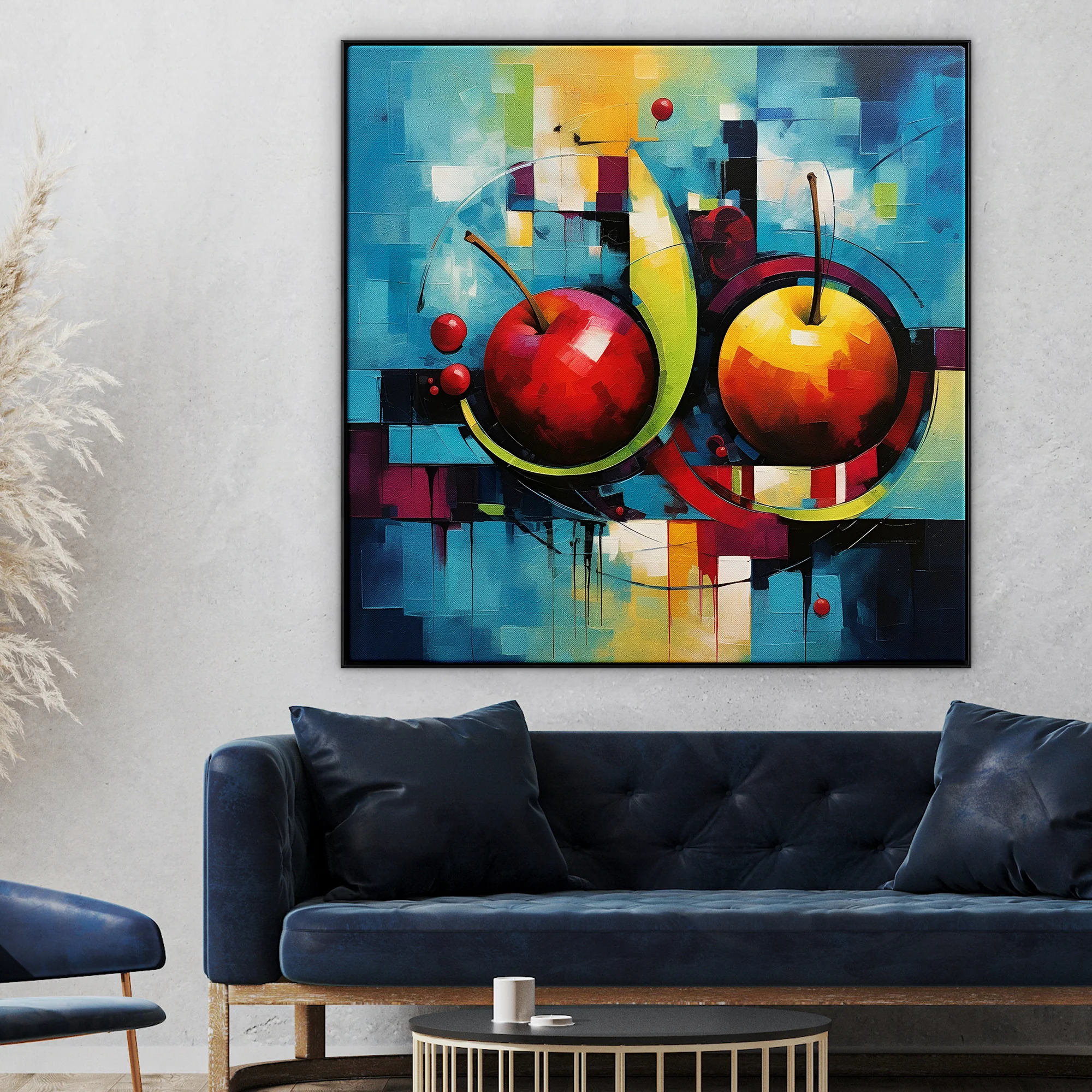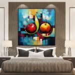 This modern piece ‘Futuristic Still-Life’ embraces a futuristic aesthetic in a classical setting. Two apples at the heart of this still life challenge tradition, reflecting innovation and simplicity.