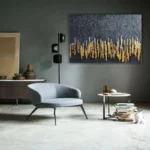 Gold Stripes is a bold statement of elegance. The striking gold streaks against the deep black background create a modern masterpiece that just breathes luxury and refinement. Perfect for adding a touch of sophistication to your home interior!