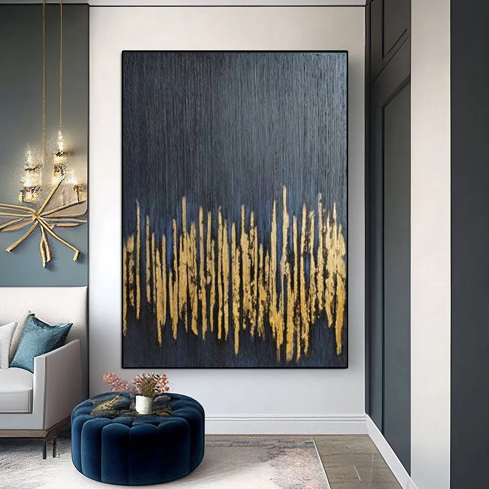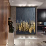 Gold Stripes is a bold statement of elegance. The striking gold streaks against the deep black background create a modern masterpiece that just breathes luxury and refinement. Perfect for adding a touch of sophistication to your home interior!