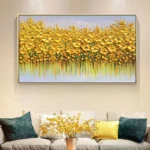 Experience the joy of a sunlit garden with this beautiful artwork. The rich golden tones and intricate details of the flowers bring a burst of color and warmth to your home.