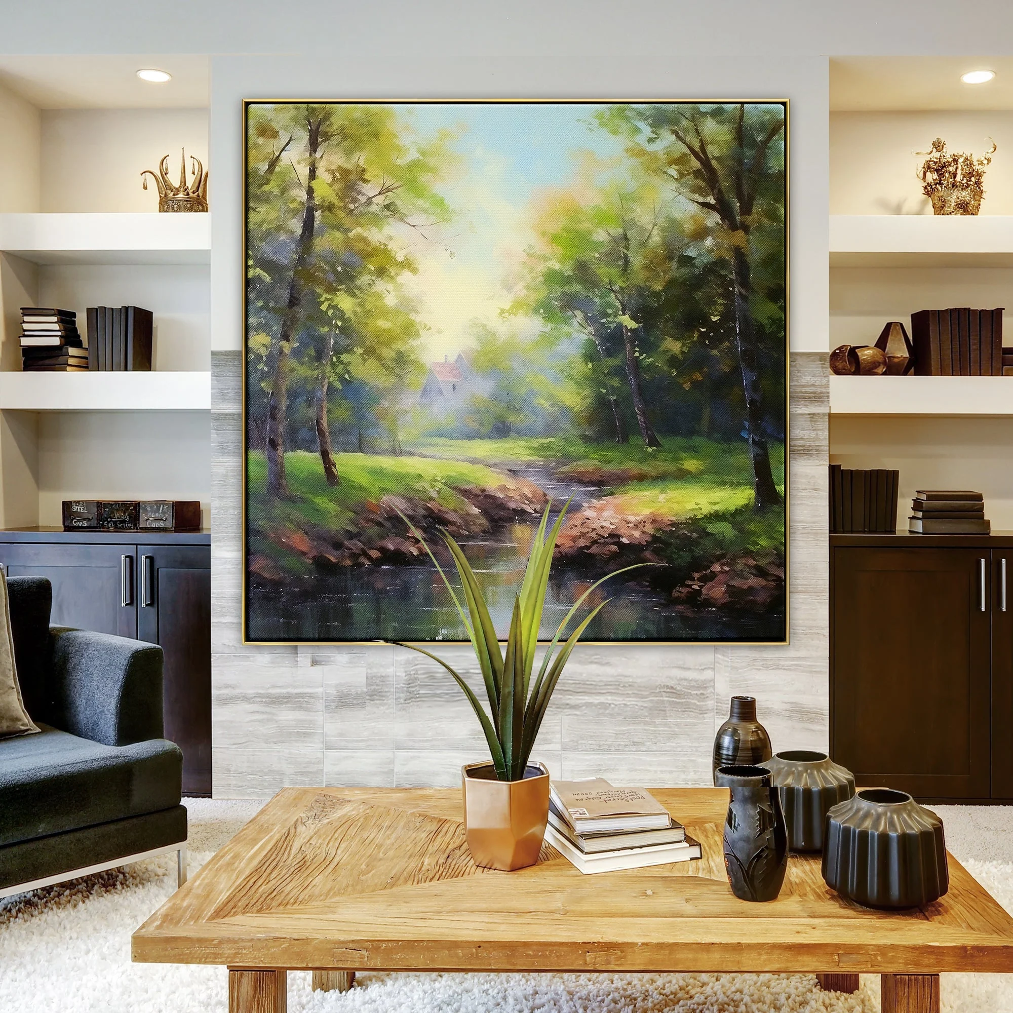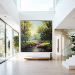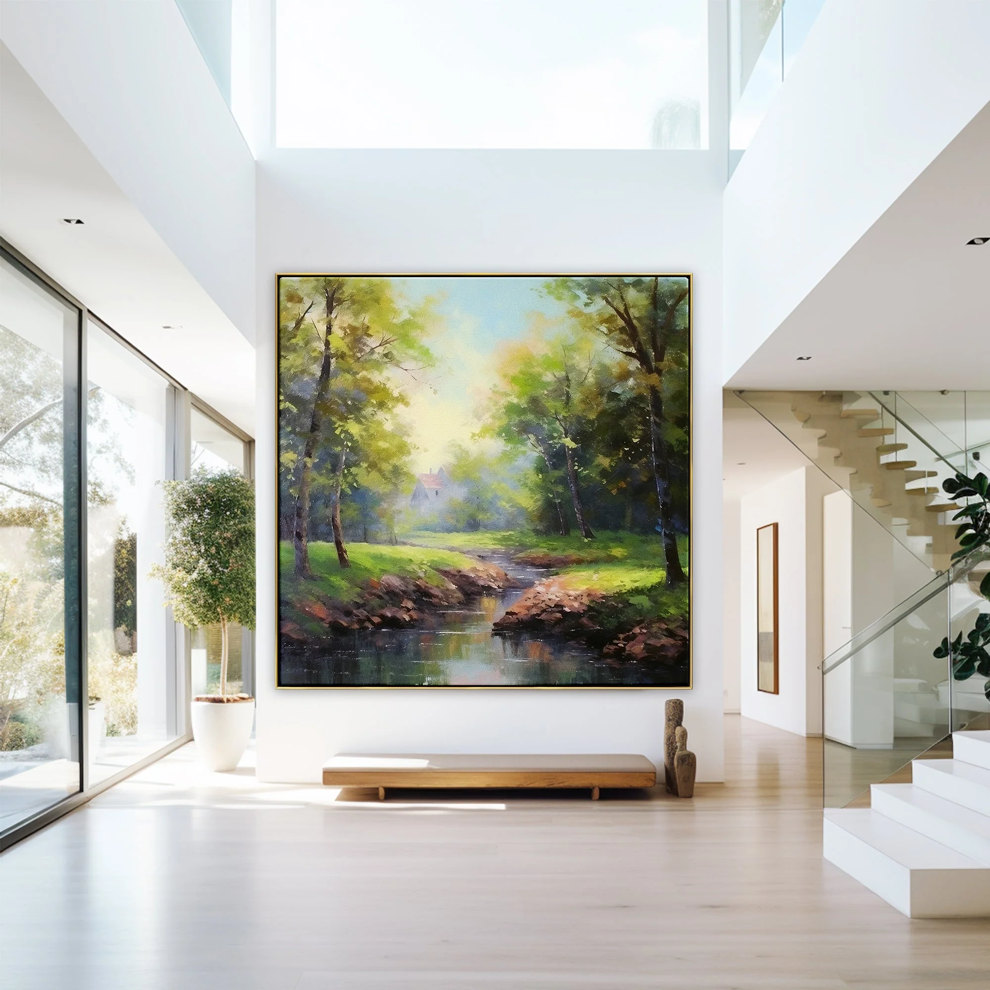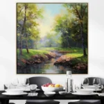 This piece takes you on a serene journey into the heart of a lush forest in Grindelwald. The peaceful river meanders through the woods, inviting you to find serenity amidst nature’s beauty.