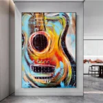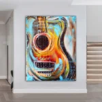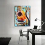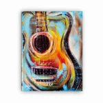 Behold a Spanish guitar, its portrait alive with vibrant hues in a unique color scheme. The artist’s touch brings out the soulful essence, creating a visually striking ode to the passionate spirit of Spanish music.