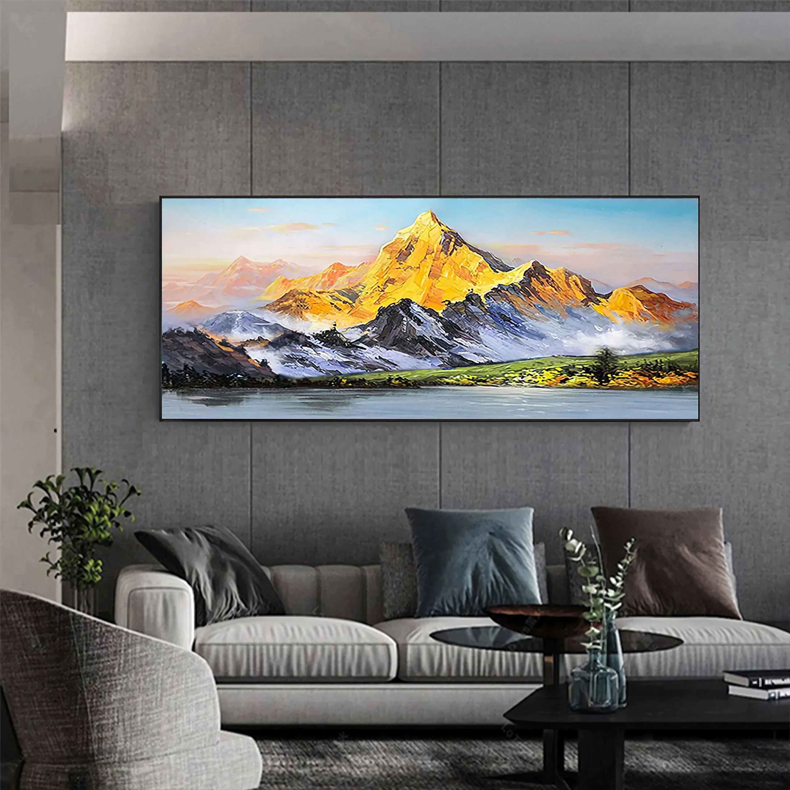Meaning ‘Golden Mountain’ in Cantonese, this bright golden peak resembles enormous prosper and wealth. This piece brings a wonderful atmosphere to many types of home interiors. With its bright colors and sparkling composition, you’ll get lost in this piece again and again! â�