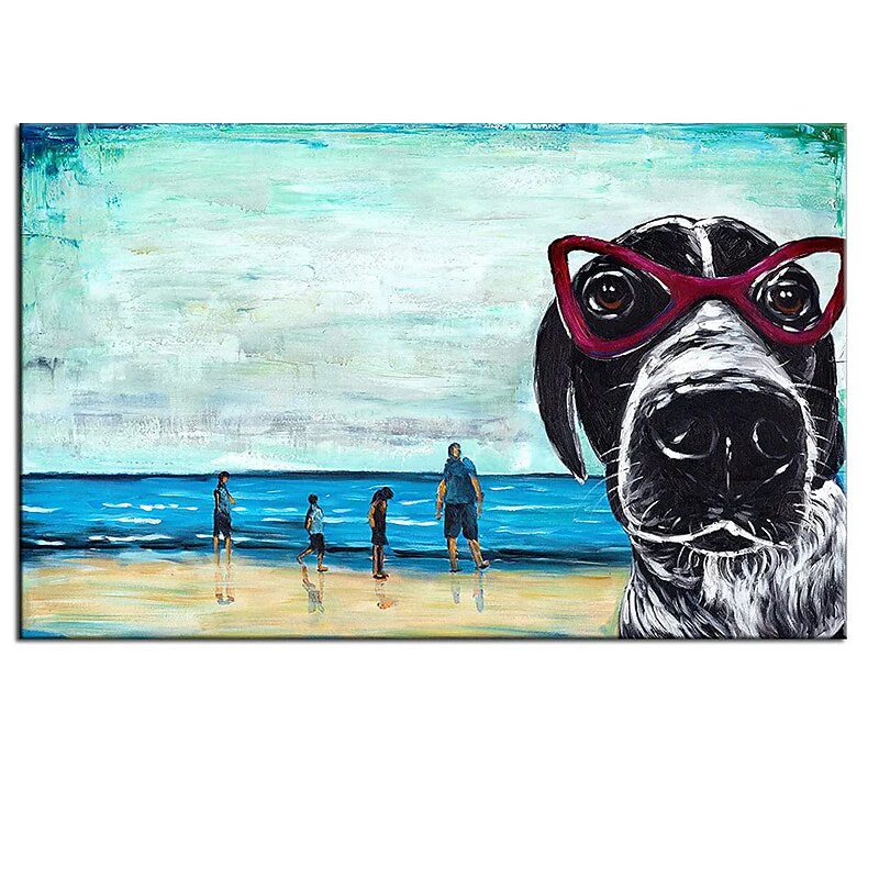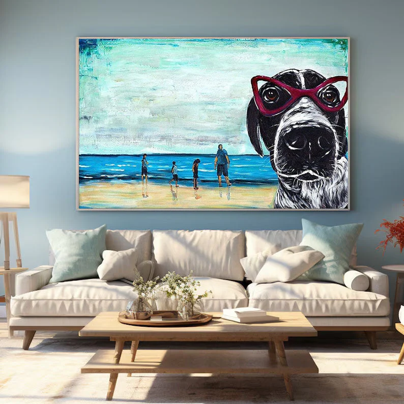 Golden Hour Play: A Vibrant Coastal Beach Canvas Painting