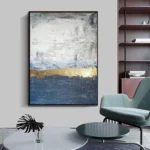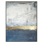 Expand your horizon with this beautiful handmade art piece! Its rather impressionistic style of portraying creates a mysterious vibe. Split in half by the beautiful golden stroke in the middle, this painting furthers the concept of contrast with tremendous elegance.