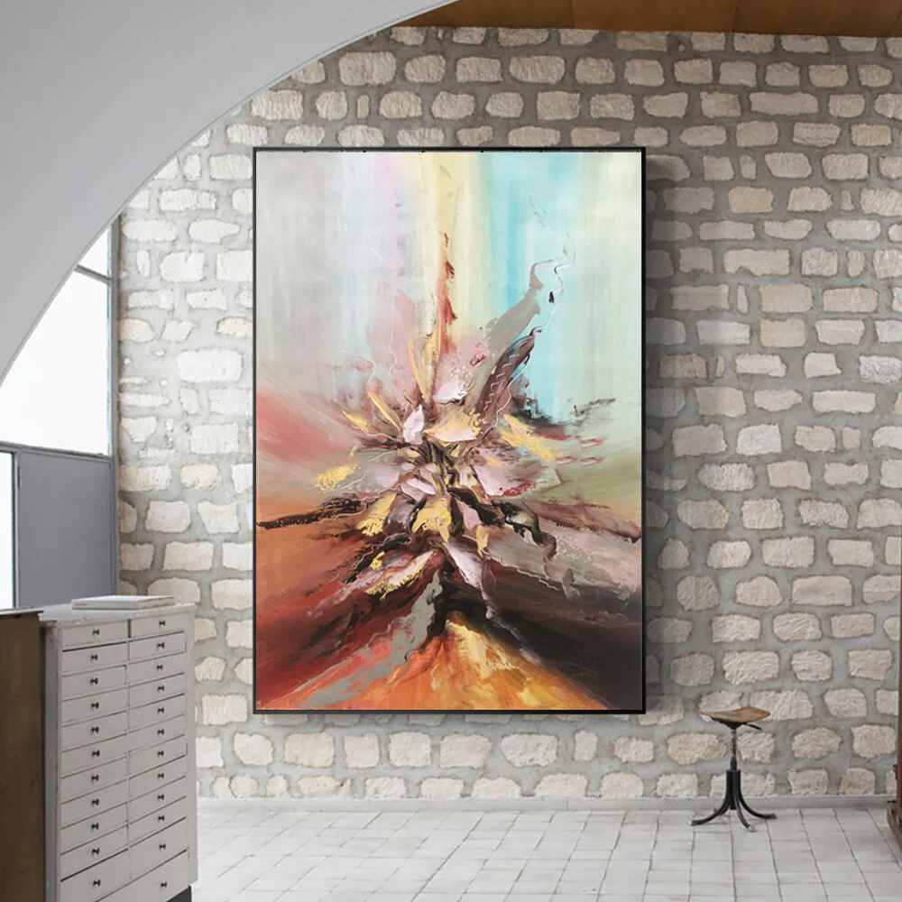 Like a true implosion of art, this painting comes at you with its dynamic composition, unique color palette, and stunning details! There is so much to see with this painting, that it’ll draw your attention, time after time! â�