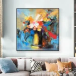 This painting transforms a simple bouquet into an abstract symphony of color and texture. The bold brushstrokes and vibrant hues radiate energy and charm, making it the perfect centerpiece for your home. It’s a timeless celebration of creativity and joy that livens up any wall.