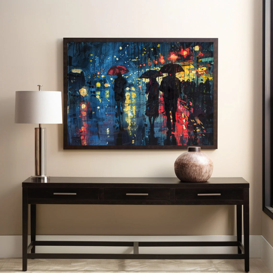 Jakarta’ radiates the city’s unmistakable spirit—a balance of chaos and beauty. Bold colors and reflections draw you into the bustling night, making this artwork a perfect blend of elegance and energy for your home.