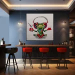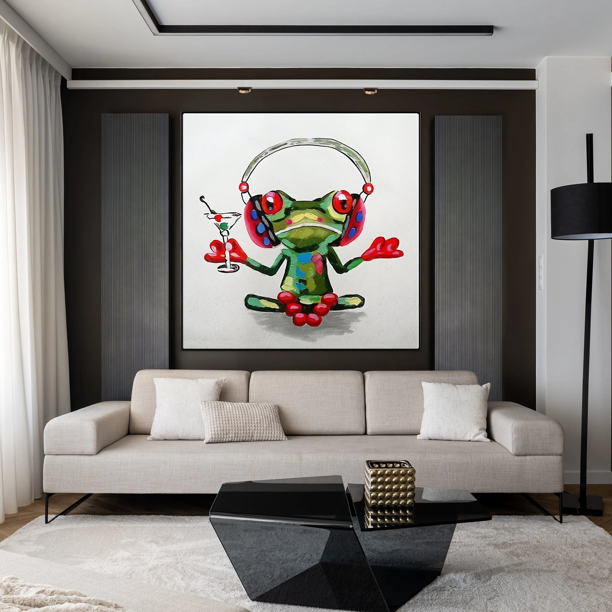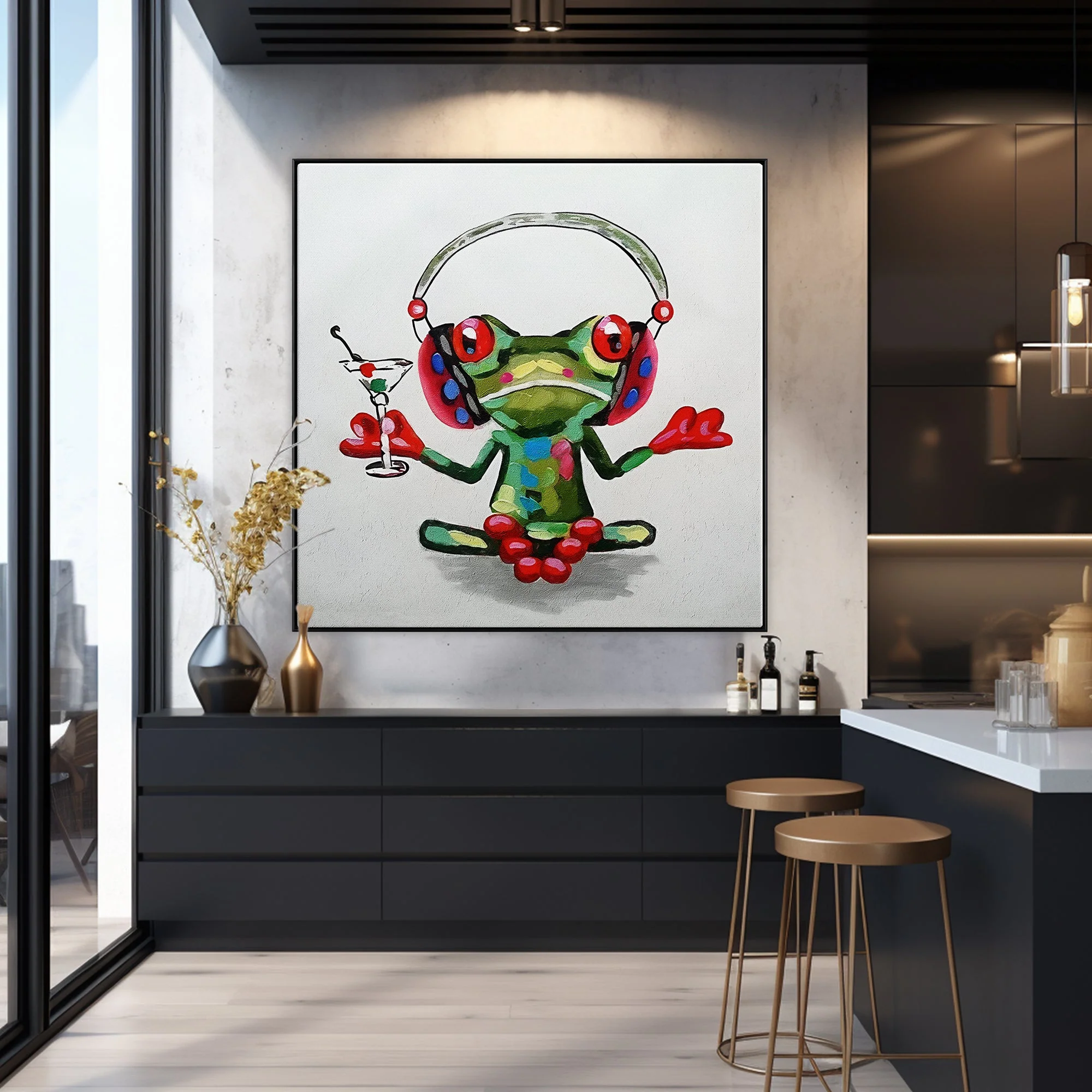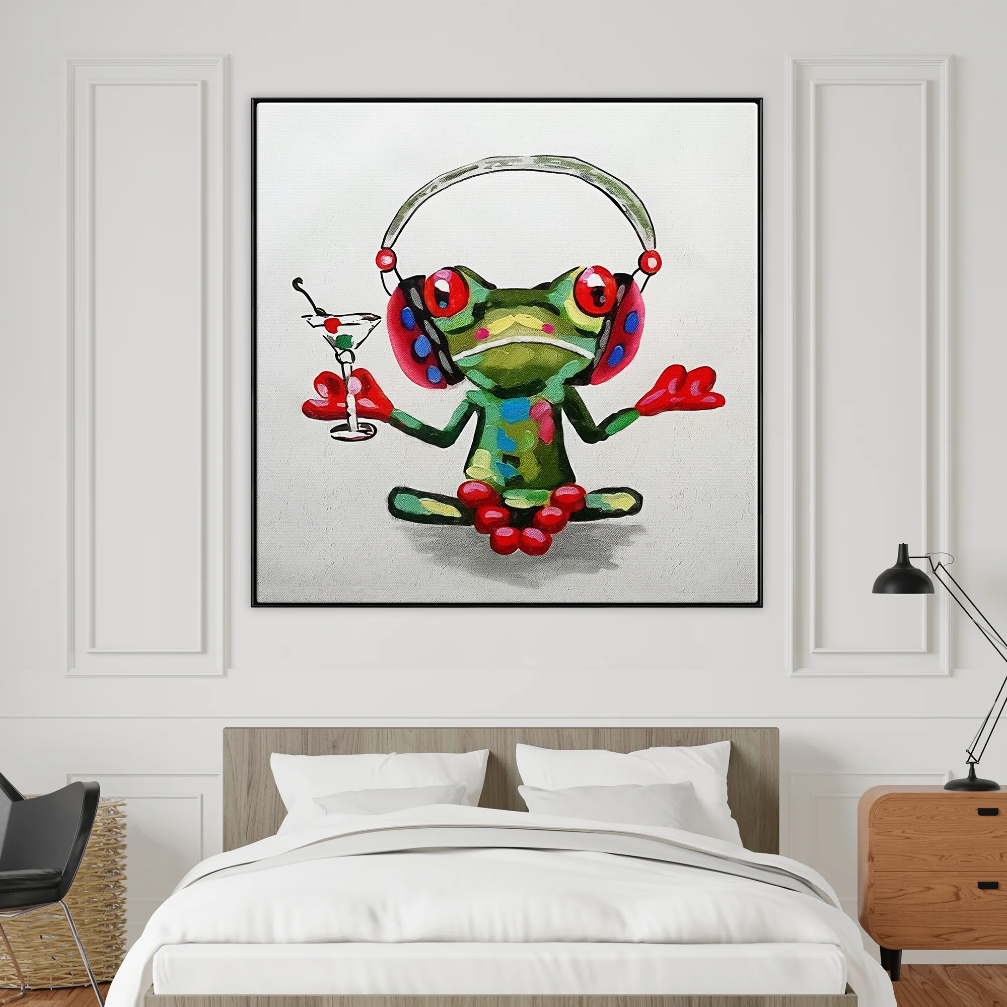 Meet Leonard, he is not unlike any other frog you’ve seen. He sets the stage for unwinding, complete with headphones and a drink in hand. Reminding you in style that it’s okay to relax sometimes and to take a moment for yourself.