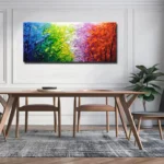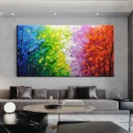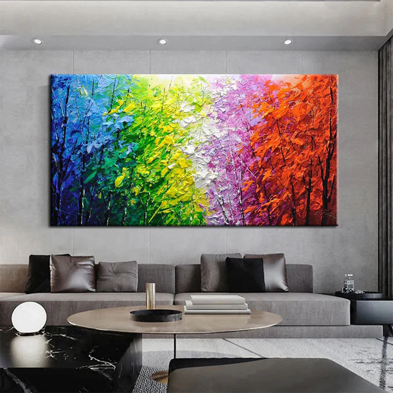 Imagine walking through a forest where every leaf is a different color. This painting brings that scene to life with rich textures and vibrant hues, making it a perfect choice for adding energy and excitement to your interior.