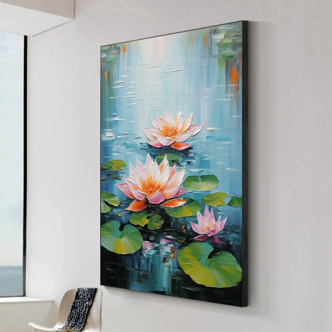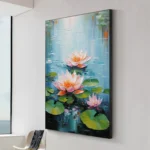 Lily Pads transforms a wall into a window to nature. The soft tones and delicate blossoms floating on calm waters bring a sense of quiet beauty to your space. This artwork is a serene reminder of nature’s gentle wonders.