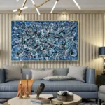Within the captivating canvas of ‘Lost’, a beautiful blue background embraces a unique choreography. Vivid white and black lines dance along the dynamic composition, evoking a sense of wonder, as if walking through the labyrinth of the unknown.