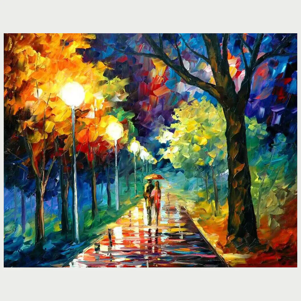 Walk down Lovelong Avenue, where colors dance, lights glow, and love fills the air. Inspired by Afremov, this painting turns a simple rainy stroll into a dreamy masterpiece. A perfect mix of warmth, romance, and a little bit of mystery.