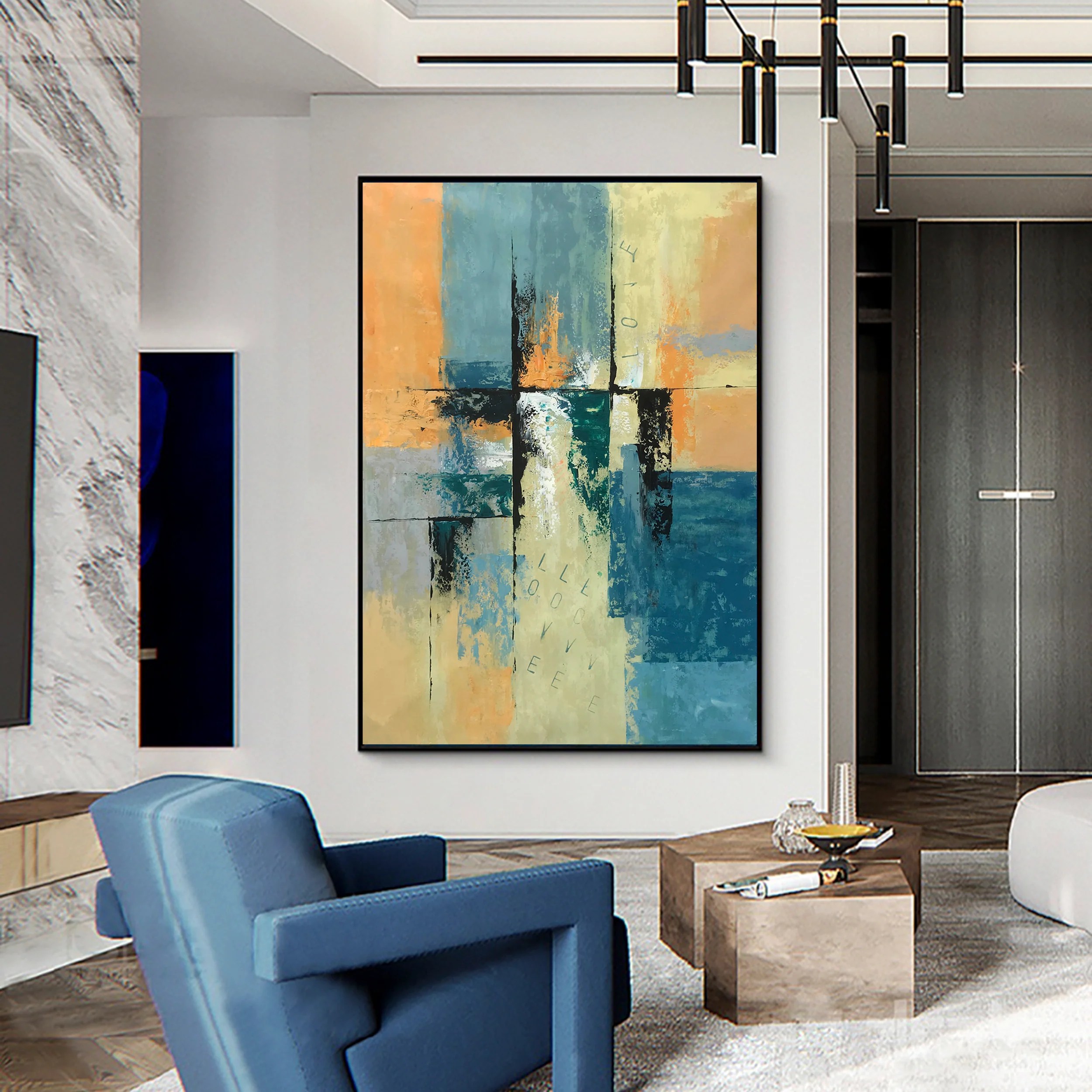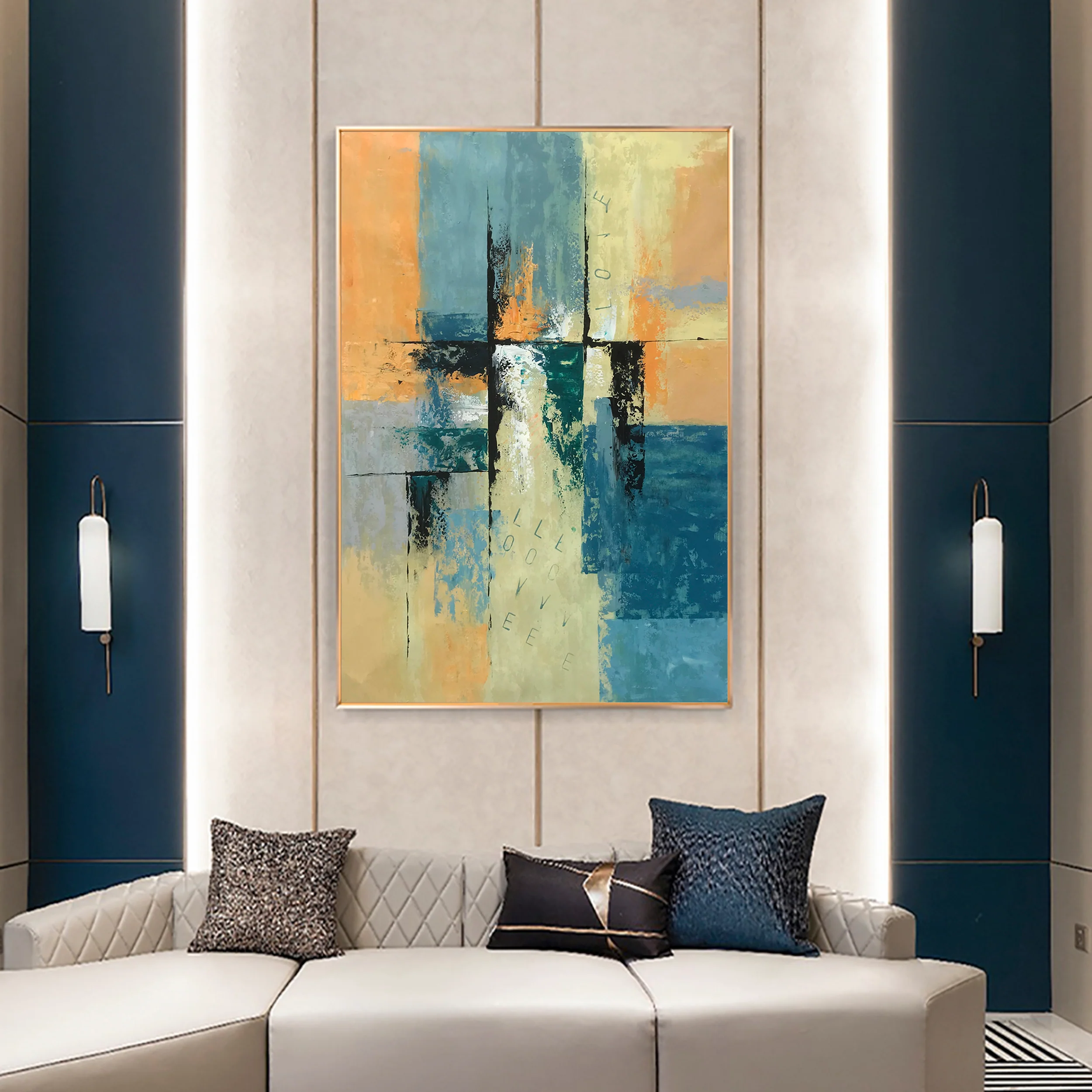 This unique modern art piece ‘LoveLoveLove’ is an homage to all abstract art. Through an eccentric composition and an exceptional color scheme with beautiful contrasts, this artwork will astound you every time you look at it!â�
