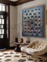 This is a commanding statement piece, destined for a space that celebrates bold, authentic design. It is perfectly suited for a modern industrial loft, a minimalist living area, or a sophisticated office. “Lunar Grid” is more than a painting; it’s a piece of sculptural art that brings a powerful, enigmatic, and tactile presence to your wall.