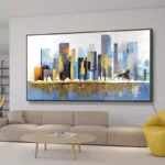 We just can’t get enough of this amazing art piece! With a unique painting style and an even more unique color palette, this piece honors the ever-buzzing Manhattan! Its multiple colors can accentuate any home interior! â�
