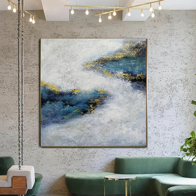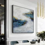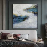 This abstract art piece shows the mystique beauty of blue. With an interesting composition and great use of contrast, the dark blue colors are even more noticible, making this captivating painting almost come alive!â�