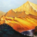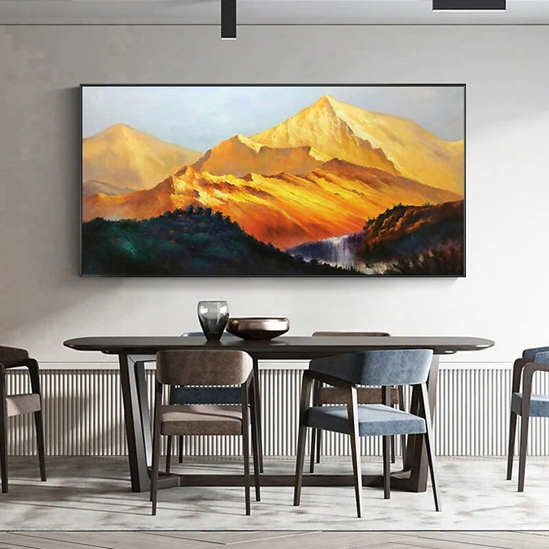 Translated from French, this amazing art piece is titled: ‘The Golden Mountains’. And beautiful gold they are! With outstanding details and a stunning, golden glow, this fine piece really catches the eye and improves any home interior!