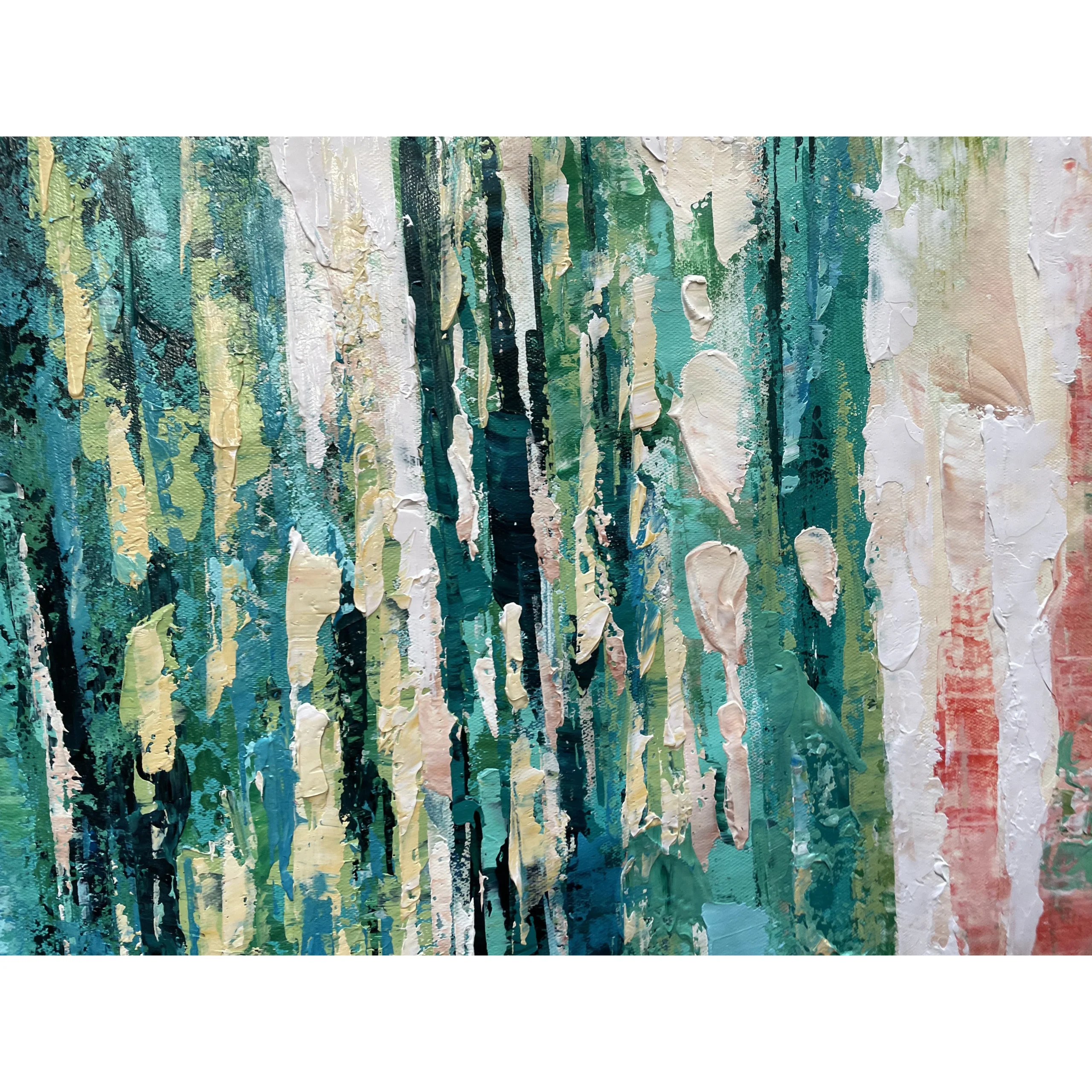 Add a little green to your home with this stunning handmade artwork. A natural, mossy atmosphere is created through the layering of different shades of green on top of each other. Making this piece a natural beauty!