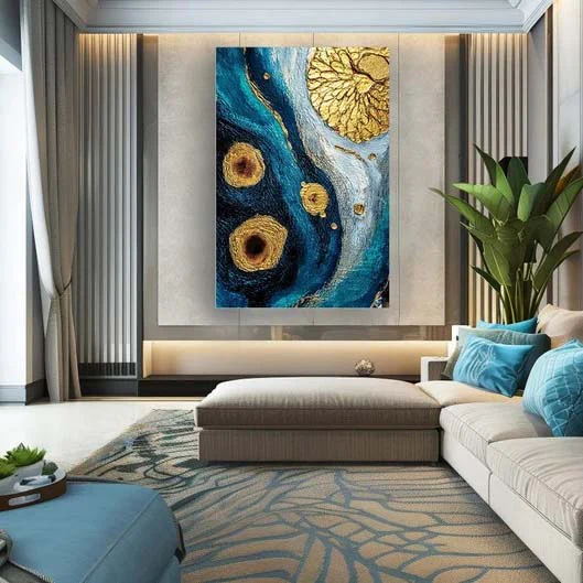 Hidden beneath the ocean surface lies a deepsea treasure with endless riches. Shaped like natural forms, they extend our imagination. Let this painting enrich your home interior, and dive into the depths!