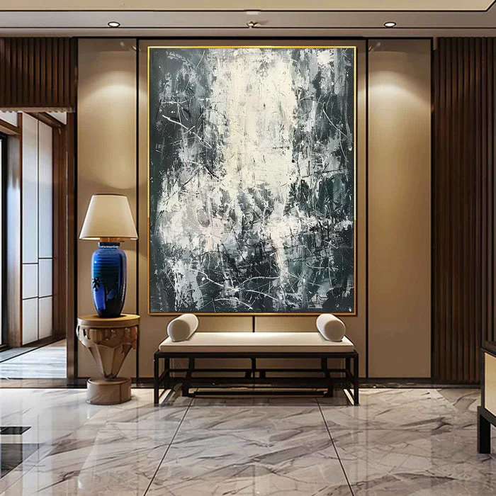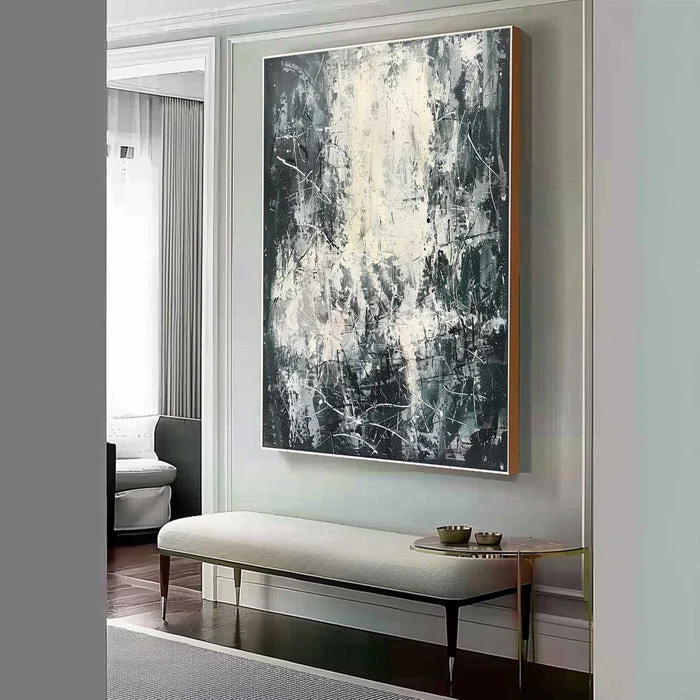 At first glance, it’s quiet. But look closer, and you’ll find motion, contrast, and texture dancing across the canvas. This piece brings both calm and curiosity to your wall. A modern mix of dark and light