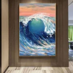 A stunningly beautiful wave crashes ashore to create the perfect circle. Many believe this phenomenon is called the ‘Ocean’s Eye’. With a unique color palette and a realistic composition, this mighty wave will compliment any type of home interior!