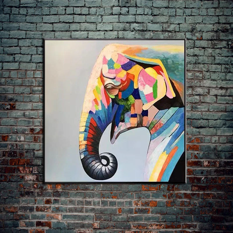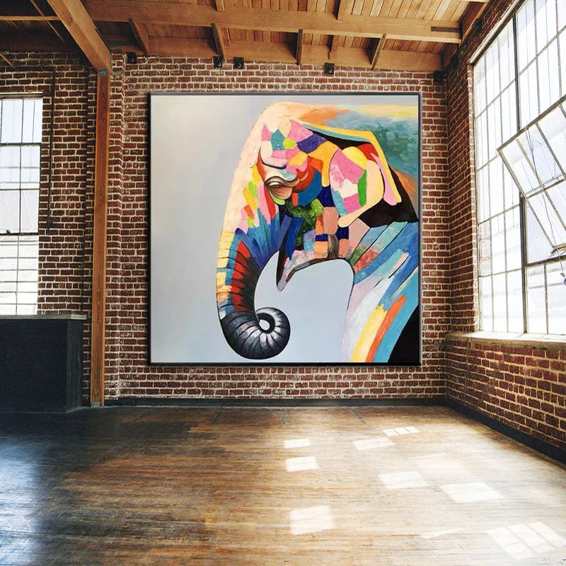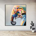 Meet ‘Olympus’ – a lively painting featuring a cheerful, rainbow-colored elephant. Experience the magic of nature and strength blending seamlessly in this joyful and vivid art piece.