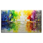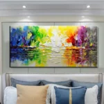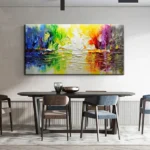 This beautiful painting captures the essence of a journey towards peace and wisdom. The vibrant colors and reflective water create a captivating scene, perfect for adding a touch of colorful serenity to your space.