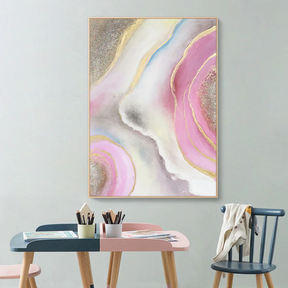 Where lava usually is destructive and ferocious, this pink painting shows a majestic, radiant kind of lava. The beautiful pink and gold shades are mixed in perfectly with the galaxy-coloured background to create a dazzling stream of elegance.