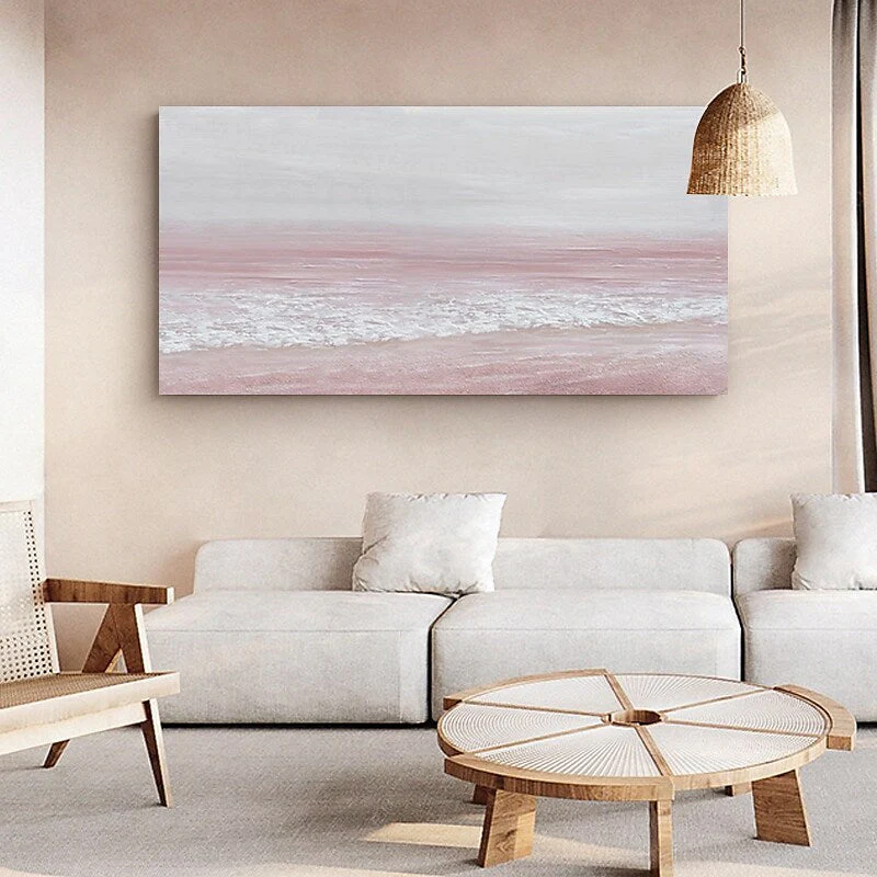 Pink Shores is a dreamy escape where soft pastel colors meet the gentle rhythm of the ocean. Its calming palette and delicate textures bring a soothing ambiance to any space. Let this painting transport you to a serene coastal retreat, perfect for a touch of subtle elegance.