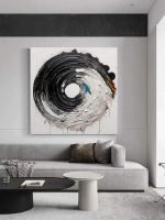Unleash the raw power of creation on your walls with “Primal Vortex.” This explosive abstract artwork captures a single, monumental gesture—a universe of energy contained in a circle. It is a study in contrasts: black against white, chaos against control, stillness against motion. The piece is a dynamic and mesmerizing statement, evoking the cosmic spin of a galaxy, the elemental force of a wave, or the perfect balance of yin and yang.