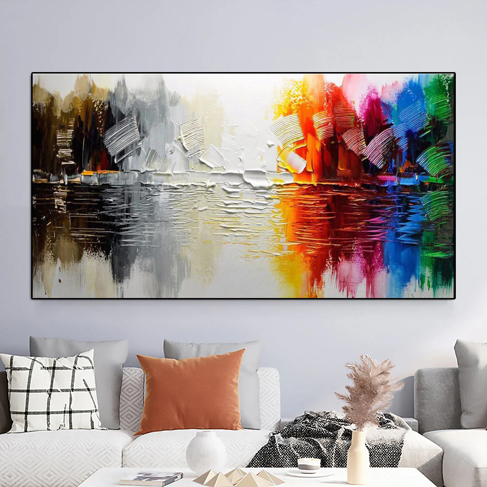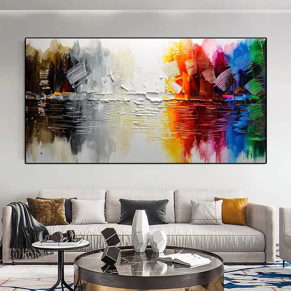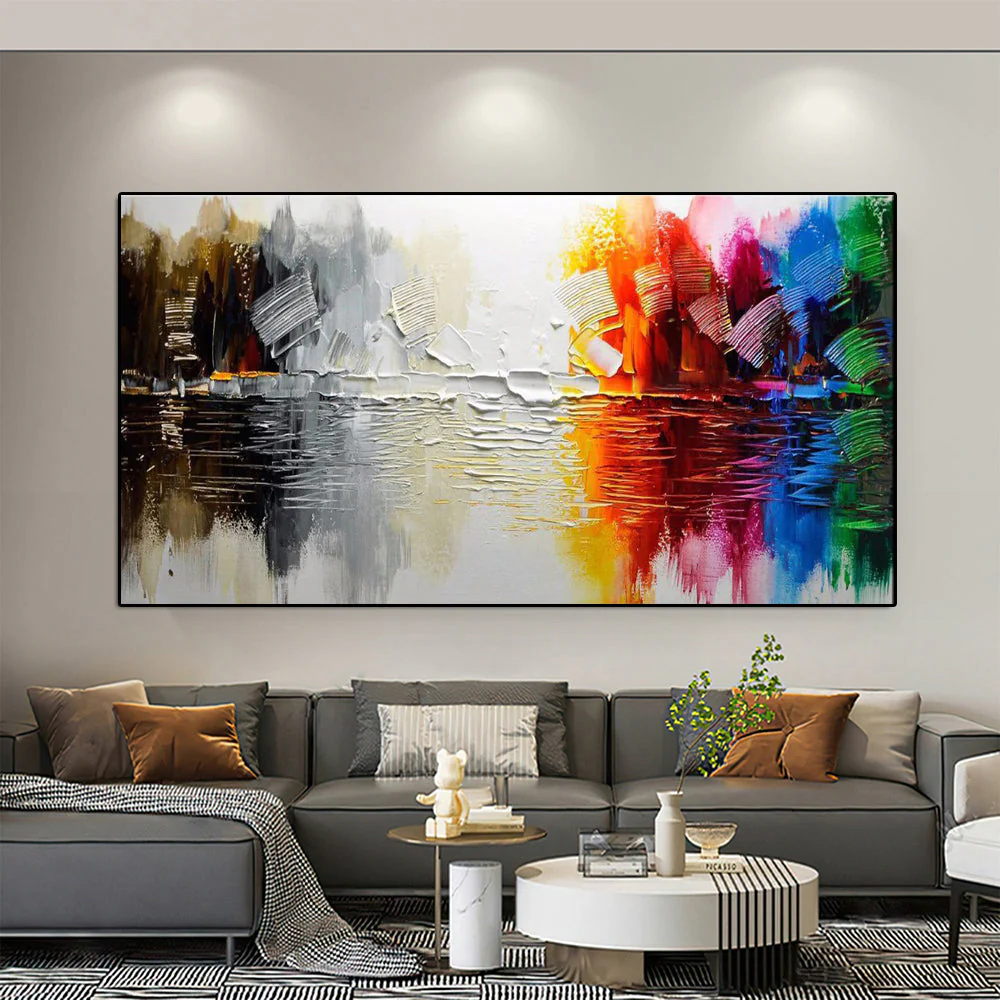 Let this beautiful artwork take you to more colorful places! With multiple different colors creating a beautiful contrast, this soothing art piece is fit for any type of home interior, enhancing the existing colors while giving off a calm atmosphere.�