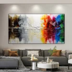 Chromatic Strata Elevate your interior with the sophisticated rhythm of “Chromatic Strata.” This stunning abstract artwork is a modern symphony