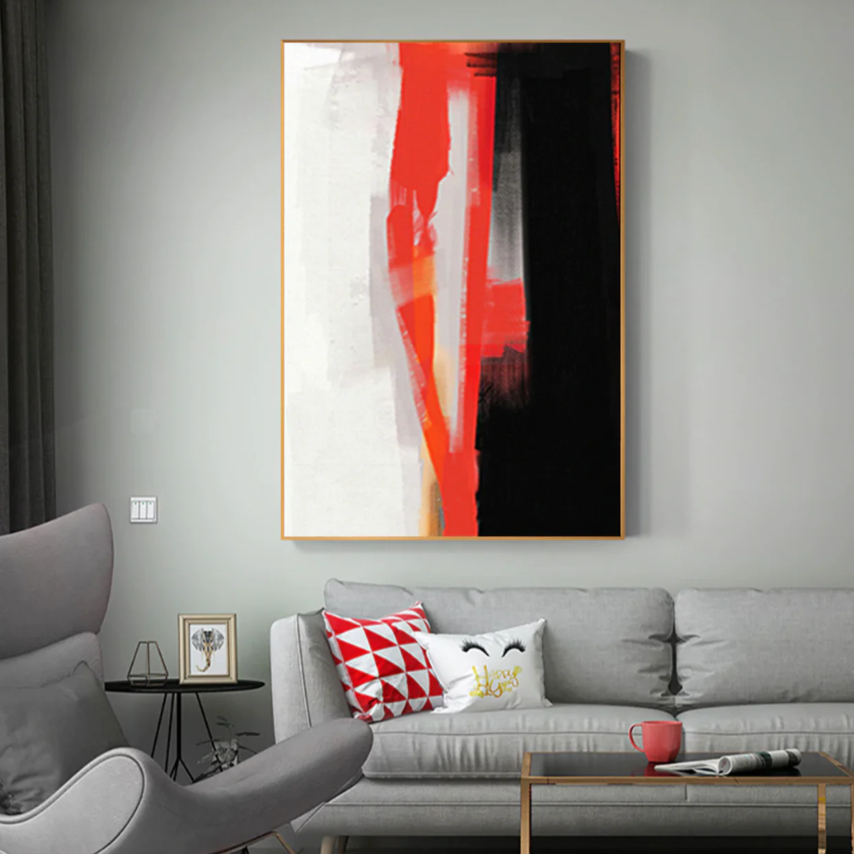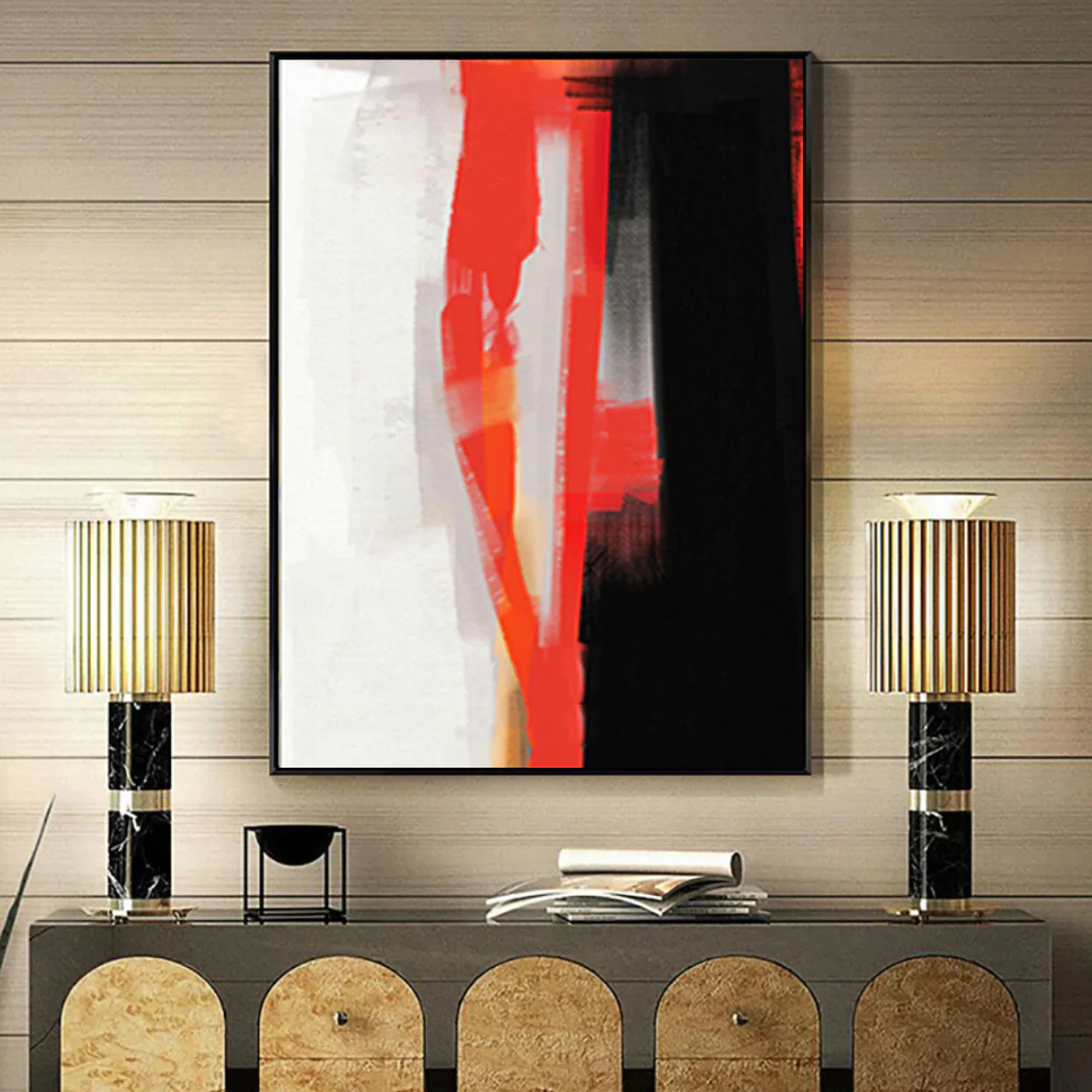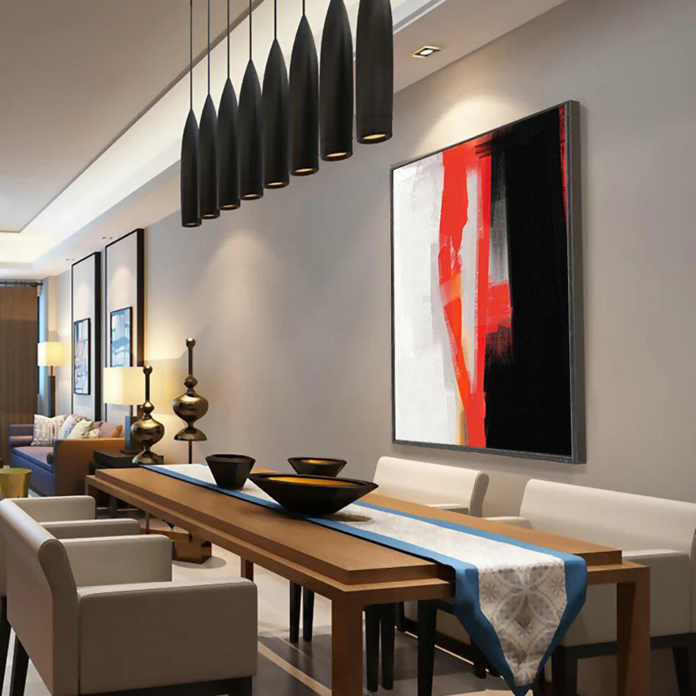 There are no beautiful surfaces, without a terrible depth’.⁠⁠ This handmade abstract art piece Red Haze tells the story of pearl white and charcoal black, two opposing forces, separated by two relentless red strokes. ⁠ Which simultaneously act as a bridge and as a border between dark and light.