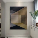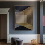Reflections captures a world that feels both modern and timeless. Sharp lines meet soft tones, creating a space that seems open, yet enclosed. This unique painting plays with perception, asking you to step closer, look again, and discover something new each time you’ll look at it!