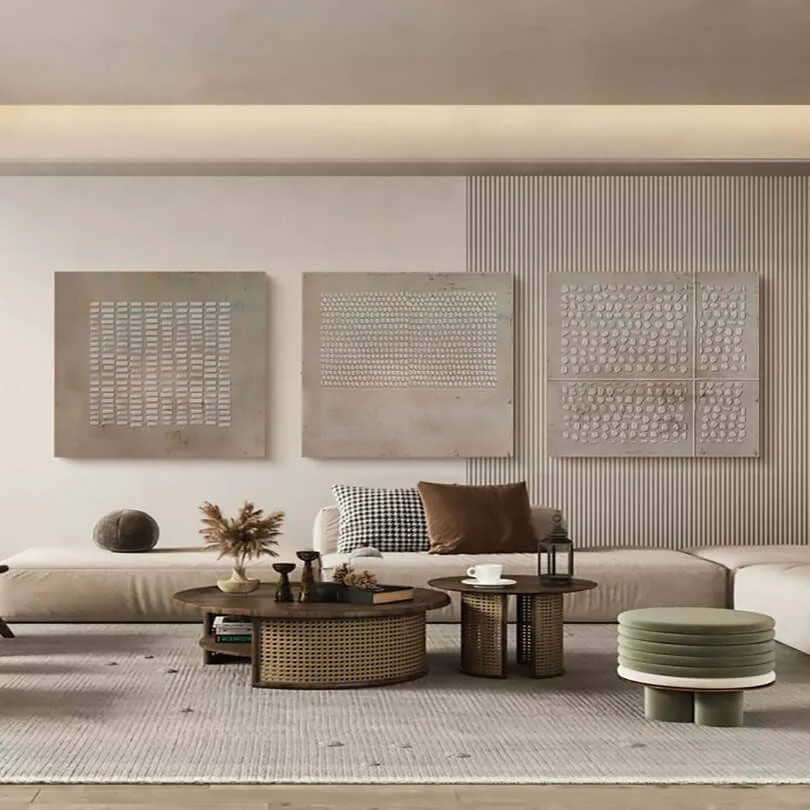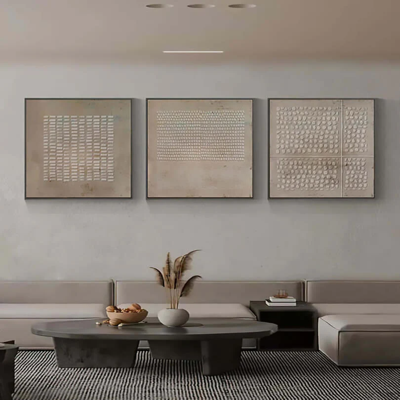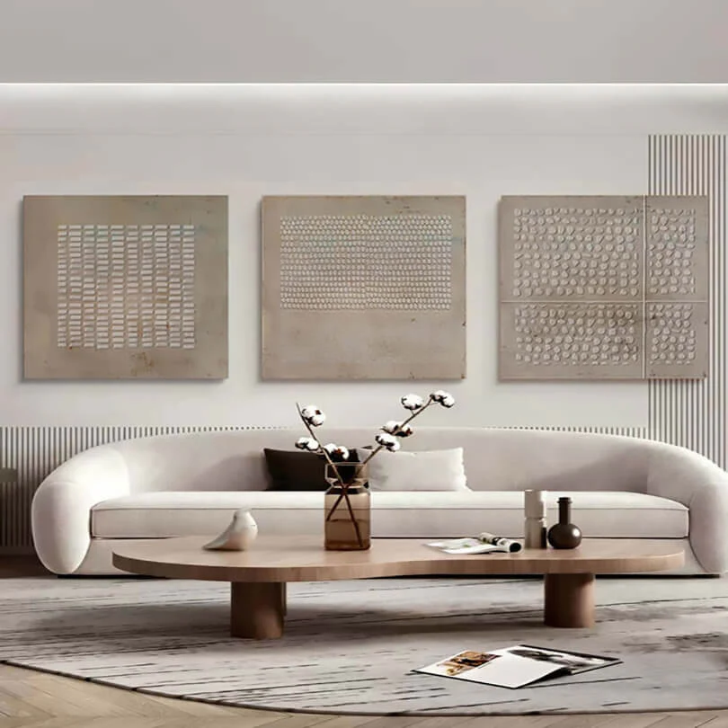 Experience true Relief with this trio of textured elegance. Each panel tells its own story through intricate patterns, adding depth and dimension to your space. Perfect for those who appreciate subtlety and sophistication in their home interior.
