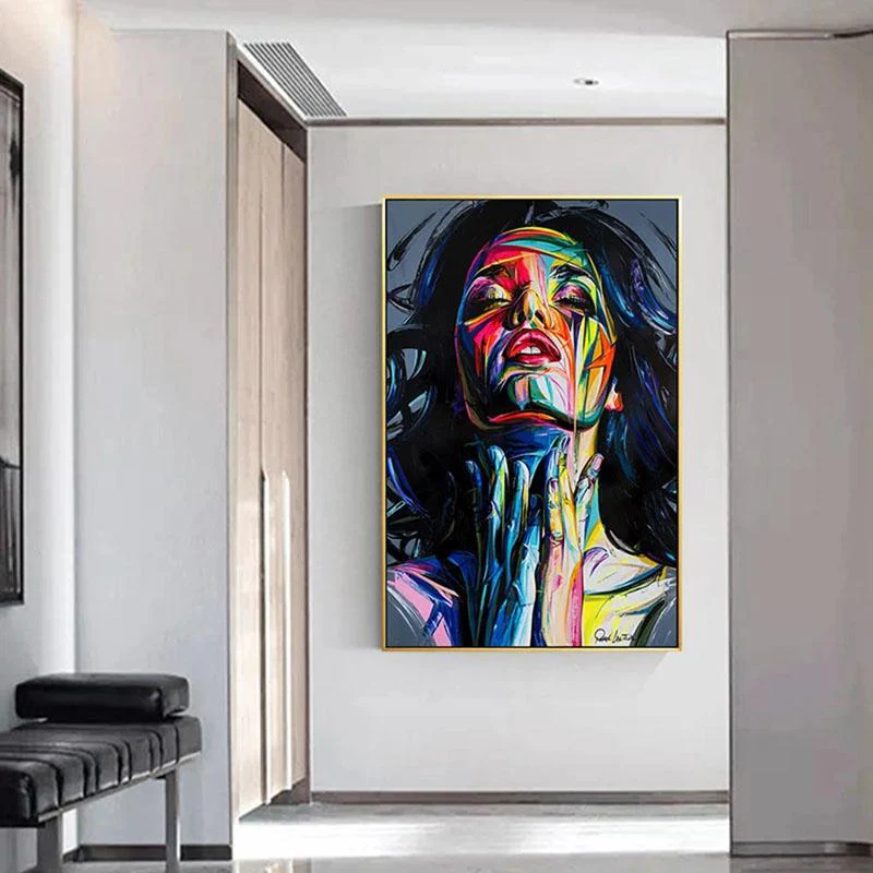 Robyn is a mysterious woman in bright vibrant colors. This will make your guests’ jaws drop when they walk through your door! That makes this the perfect painting for your home: Robyn will make any room look tasteful and classy!