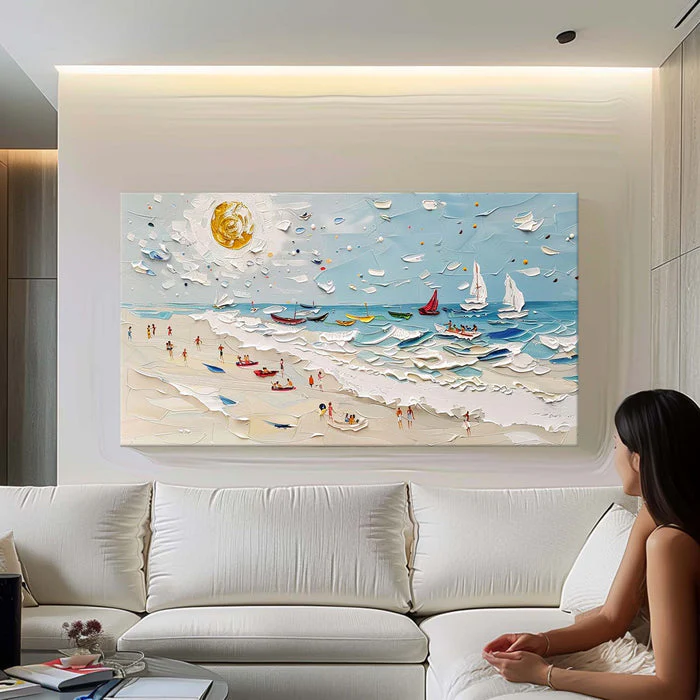 Sun-Kissed Shore: A Lively Coastal Beach Canvas Painting