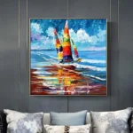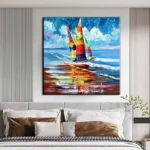 Sailing in Style captures the vibrant energy of a colorful sailboat cutting through the waves. This lively painting brings a burst of color and movement to your space, perfect for those who want to feel the breeze of adventure right from their living room.