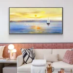 Embark on a beautiful journey with ‘Sailing to the Sunset’. Let this enchanting painting take you on a journey into serenity, where the colors of a tranquil evening sky meet the horizon.