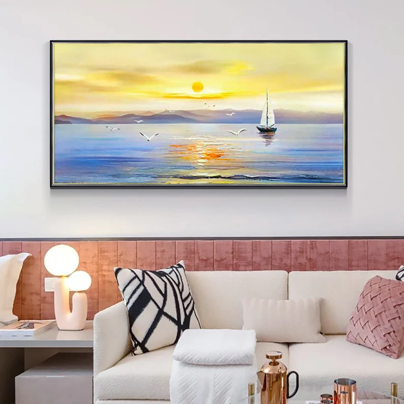 Embark on a beautiful journey with ‘Sailing to the Sunset’. Let this enchanting painting take you on a journey into serenity, where the colors of a tranquil evening sky meet the horizon.