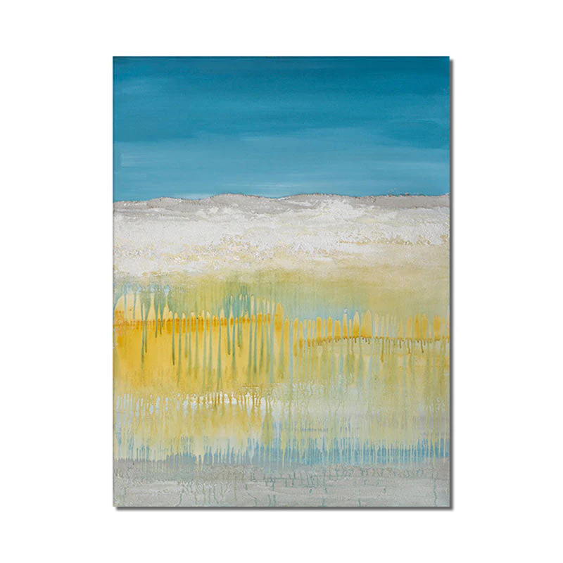 Dive into the serene charm of Salty Waters, where bold blue skies meet golden reflections. The unique dripping technique brings life to the canvas, creating a mesmerizing sense of movement and tranquility. A true ocean-inspired masterpiece!