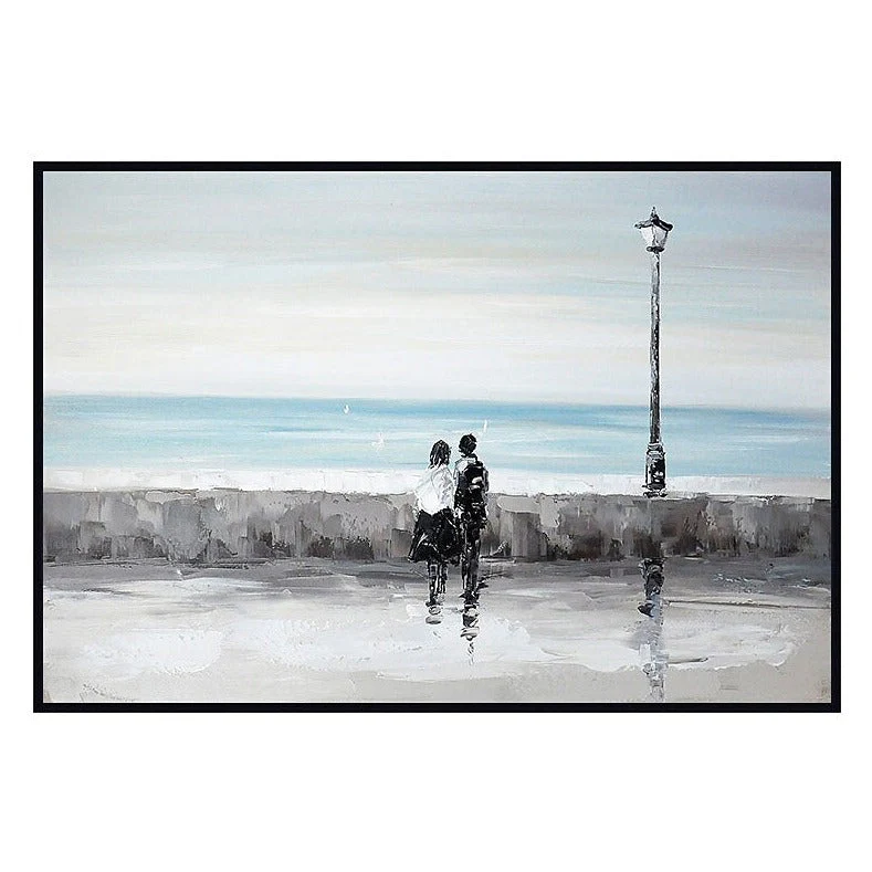 With the seaside as their background and their hearts as their compass, two loving people stand together and gaze out into the distance. This melancholic artwork brings the beauty of the seaside to your home in a romantic style. â�