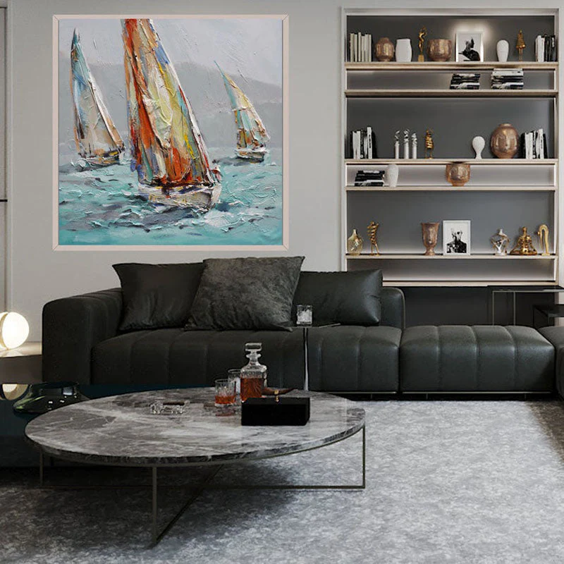 Add a dash of adventure to your decor with ‘Setting Sail.’ This exquisite painting brings the essence of sailing to life, with vibrant colors and textured brushwork creating a sense of motion.