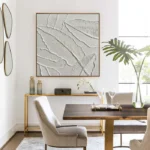 • Interior designer sourcing textured art with color swatches.