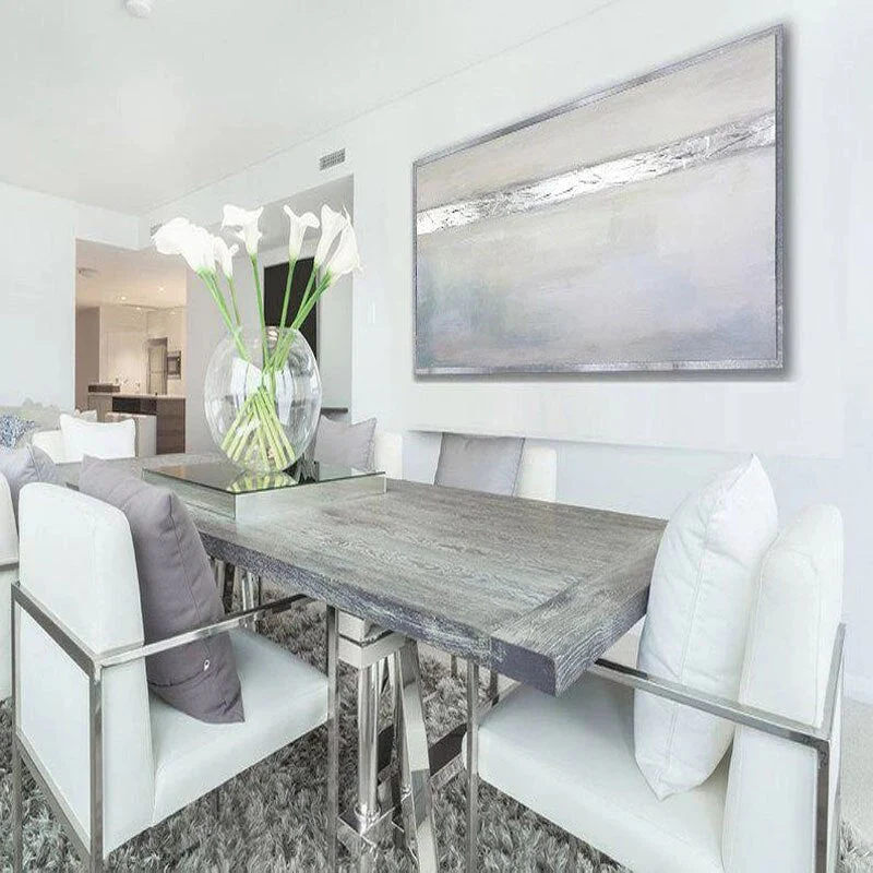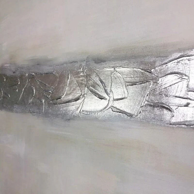 ‘Every cloud has a silver lining’. There is always something good to be found in bad things. This abstract artwork portrays that gracefully. With one horizontal silver line, a powerful composition is created.