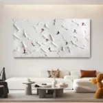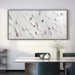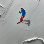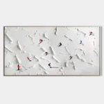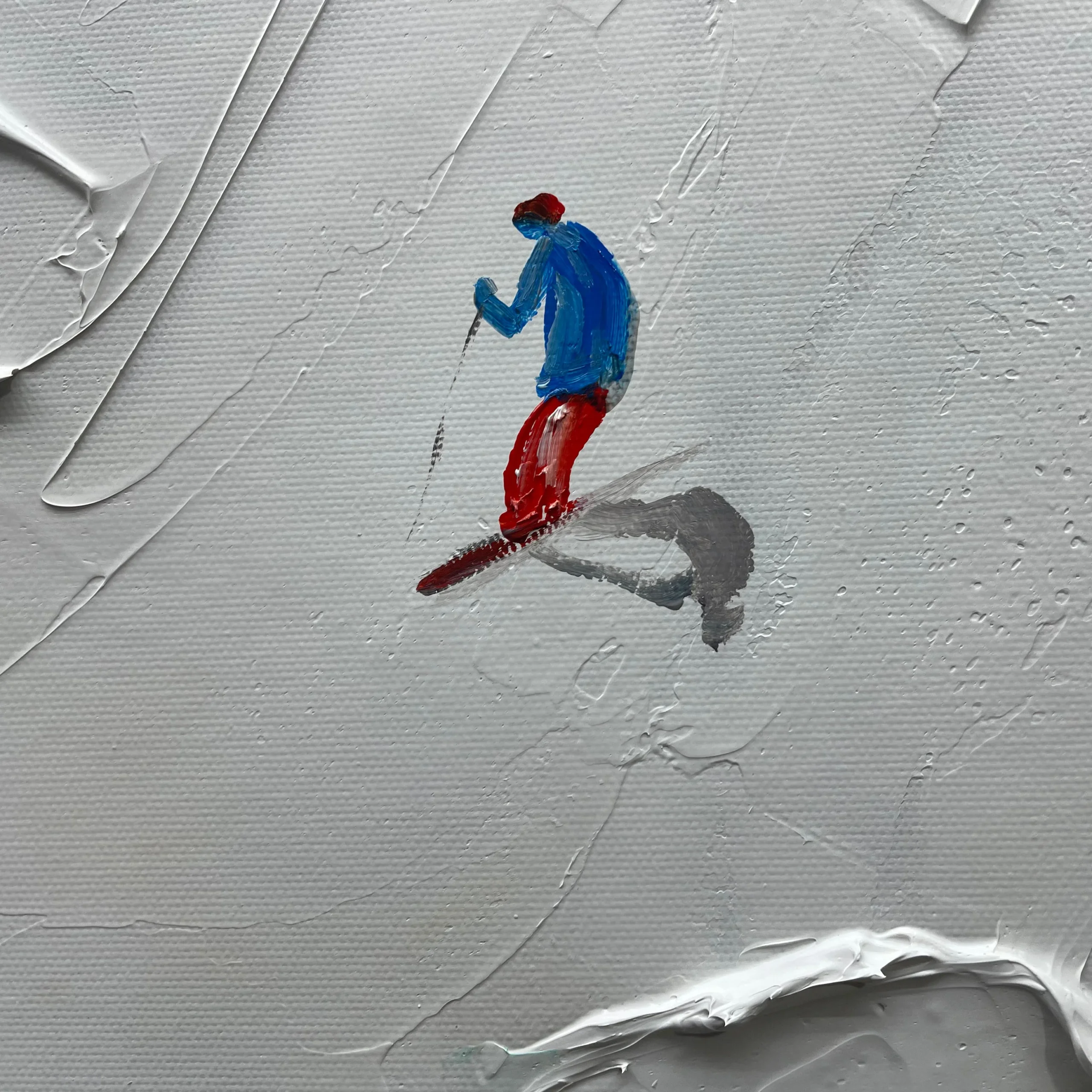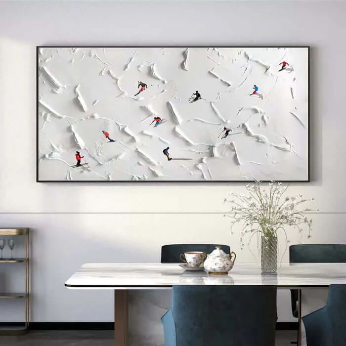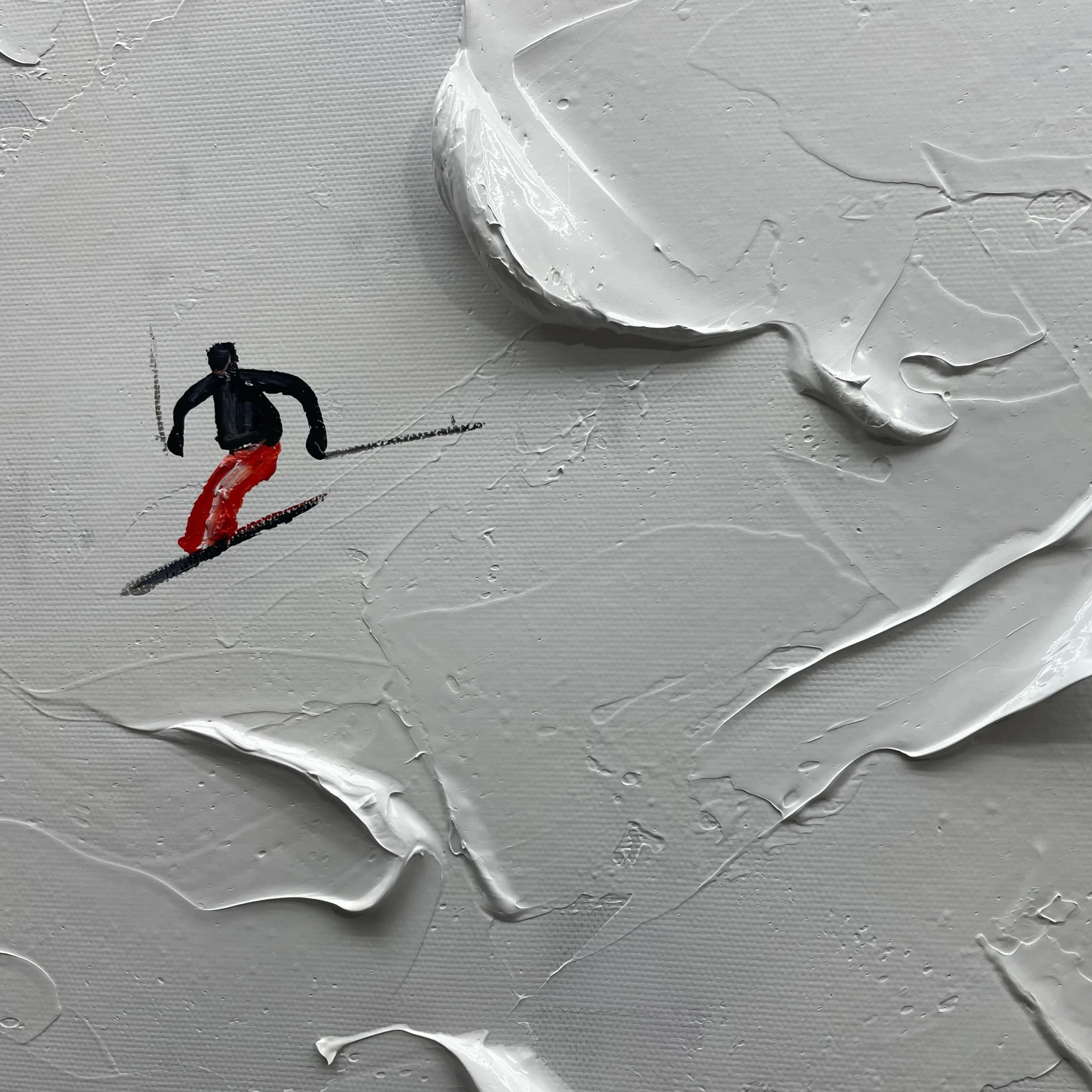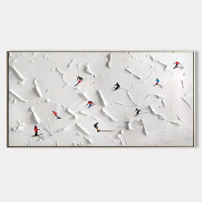 Look at these brave skiers go! They conquer the mountain with great style and finesse, creating a beautiful composition. The many painting techniques used in this painting make these winter athletes really pop out of the canvas! Making this a rich and unique addition to any home interior! â�